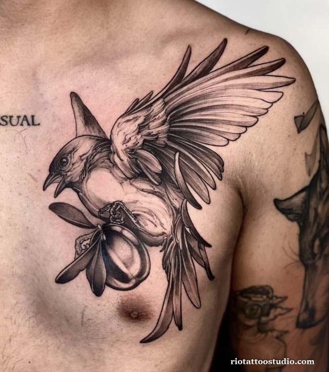 Experience the artistic flight of a bird tattoo at Rio Tattoo Studio