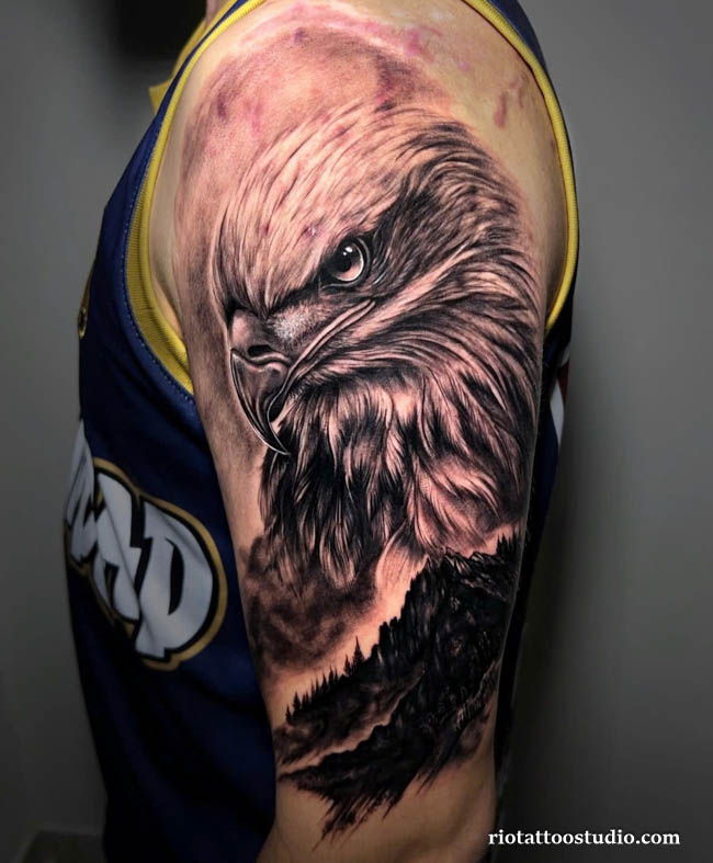 Experience the fierce elegance of an eagle tattoo at Rio Tattoo Studio