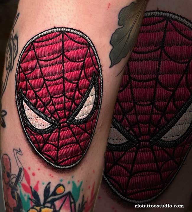 For the young and the young at heart, pop culture and cartoon embroidery tattoo art offers a playful “patch” look that is incredibly nostalgic. These designs make your favorite anime characters or superheroes look like a physical merchandise patch you might find on a vintage jacket. The “border” of the tattoo is often designed to look slightly frayed or thick, enhancing the illusion of a sewn-on accessory.