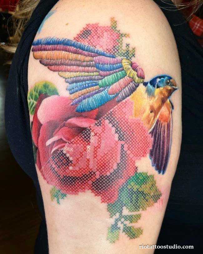 The embroidery tattoo has revolutionized the world of body art by blending the tactile charm of traditional needlework with the permanent elegance of modern tattooing. This hyper-realistic style creates an incredible optical illusion, making the ink appear as if it were actual colorful thread stitched directly into your skin.