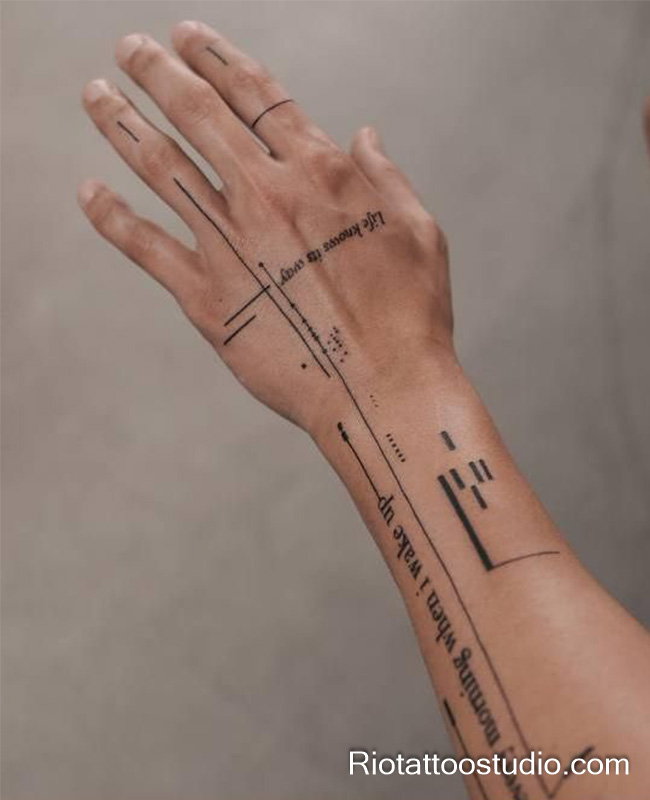Geometric line finger tattoos – minimalist sacred geometry designs for hands