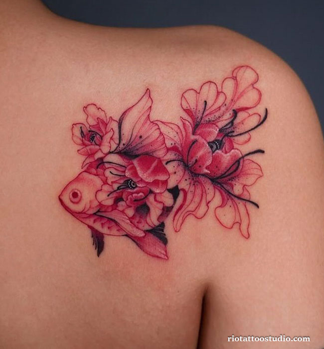 Achieving a high-quality realism fish tattoo requires an artist who can master the illusion of light reflecting off wet scales. Betta fish and goldfish are perfect subjects for this style due to their vibrant colors and flowing, veil-like fins that catch the light in complex ways. Our masters use advanced white-ink highlights to create a “wet” look, making the fish appear as if it is swimming just beneath the surface of your skin.