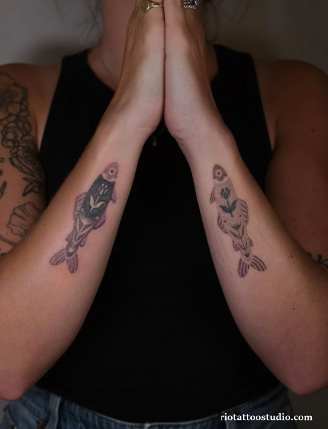 Choosing a twin fish tattoo idea allows for beautiful symmetrical placements on the body, such as the shoulder blades or the forearms. Many couples also choose this concept as a shared symbol of their partnership, representing two lives swimming together in the same ocean. We specialize in “Anatomical Mapping” to ensure that the two fish interact perfectly with your body’s natural shape.