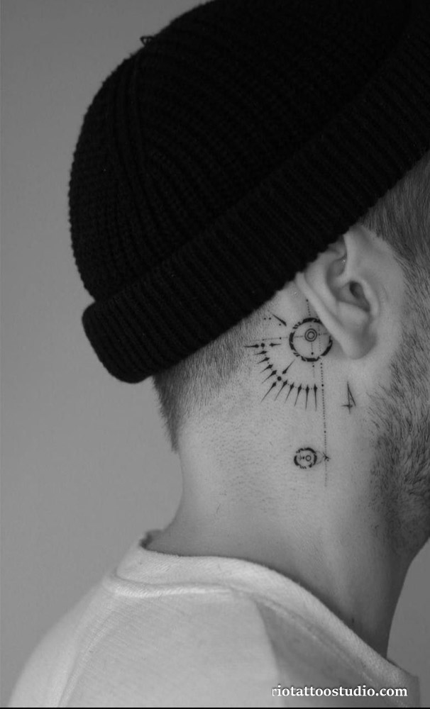 Not all guys with neck tattoos go for massive pieces. A small cross, a tiny star, or even a minimal butterfly tattoo behind the ear can be just as impactful. These “micro” designs are perfect for adding a touch of edge without being overly loud.