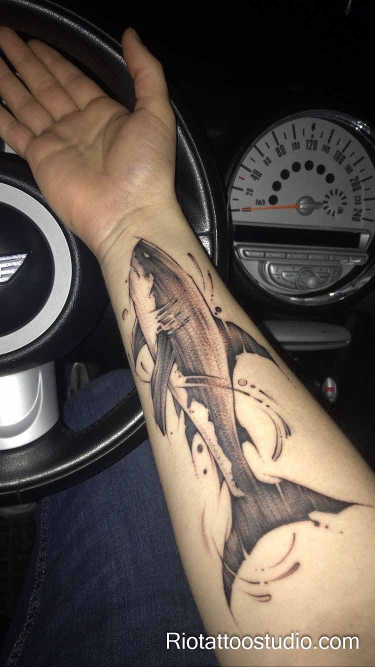 Professional shark tattoo pricing and consultation at Rio