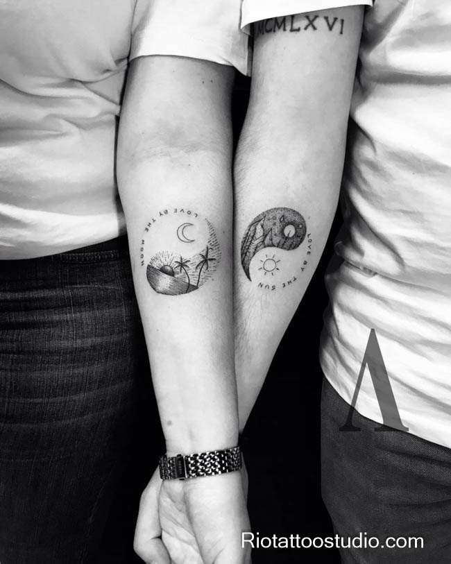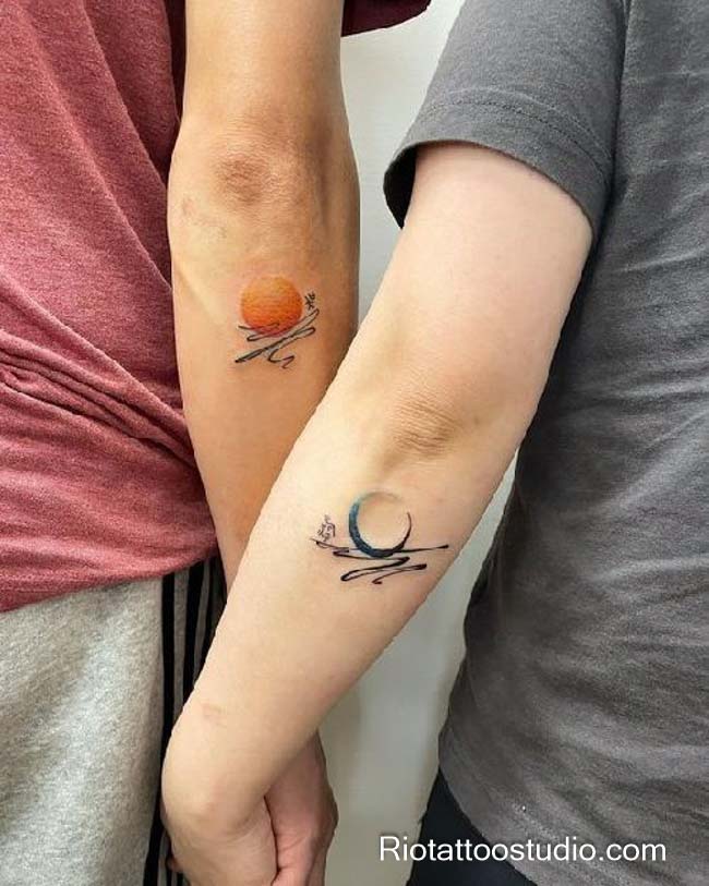 Experience the cosmic beauty of a moon and sun tattoo at Rio Tattoo Studio