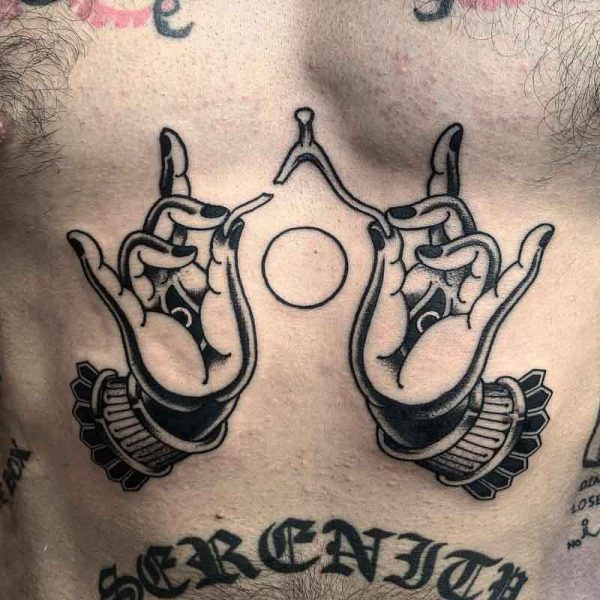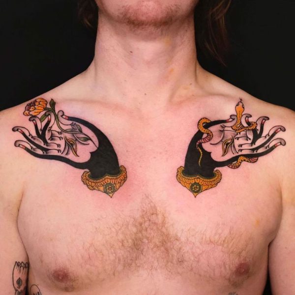 Với vị trí gần trái tim, hình xăm bàn tay Phật ở ngực không những mang tính thẩm mỹ mà còn chạm đến chiều sâu tinh thần và cảm xúc cá nhân. Ngực là nơi chứa đựng trái tim, trung tâm của cảm xúc, lòng nhân ái và niềm tin. Xăm hình bàn tay Phật tại vị trí này thể hiện: