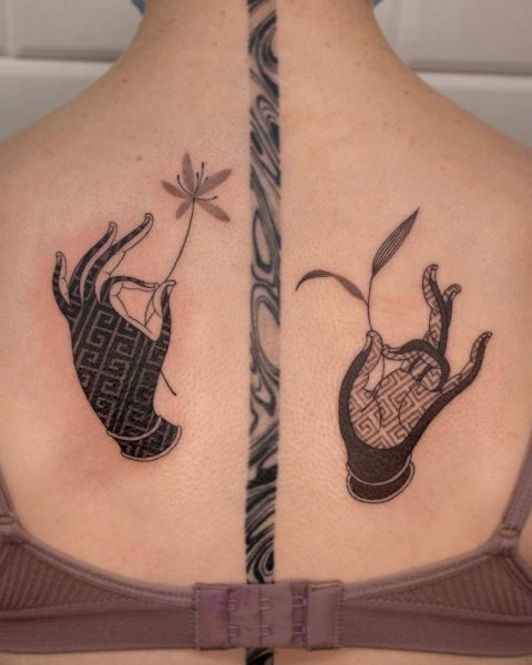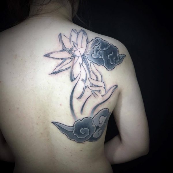 Vùng lưng có diện tích rộng nên rất phù hợp để thể hiện hình ảnh tay Phật một cách chi tiết và sống động. Tùy vào sở thích cá nhân, hình xăm tay Phật có thể được kết hợp với các họa tiết như hoa sen (tượng trưng cho sự giác ngộ, thuần khiết), ánh hào quang (sự khai sáng, giác ngộ tâm linh), chuỗi hạt (thiền định).
