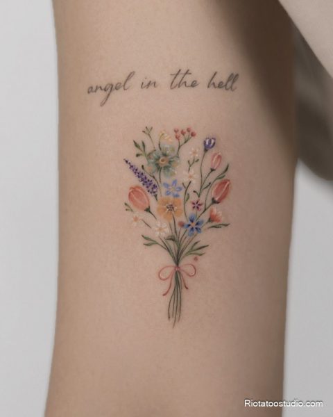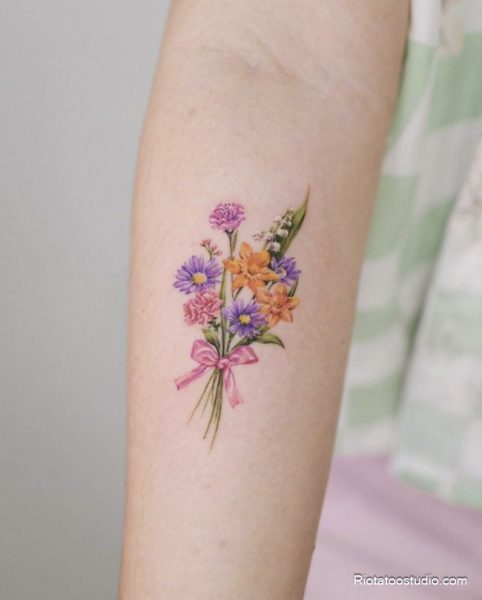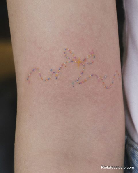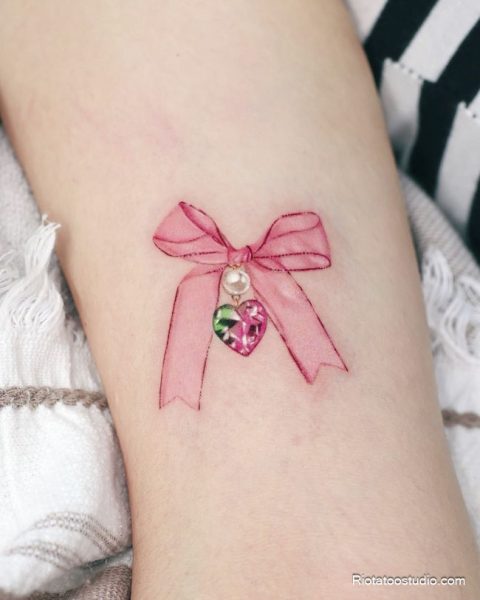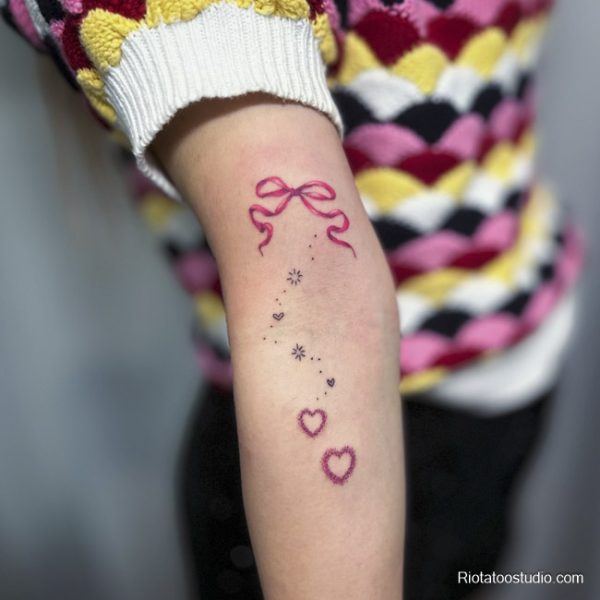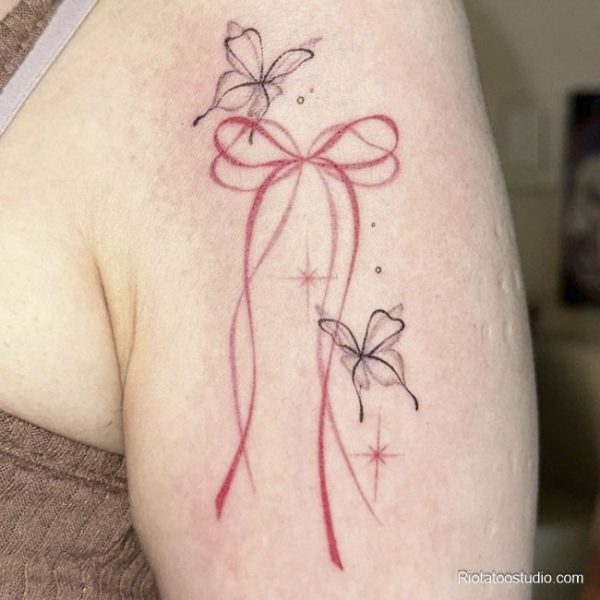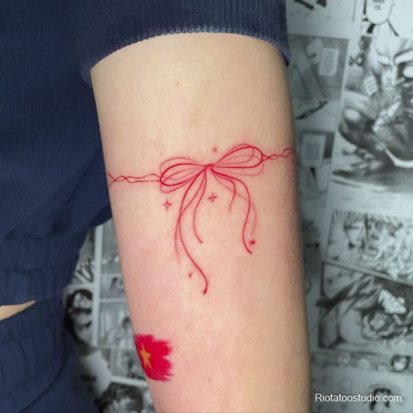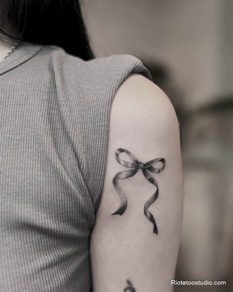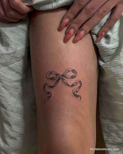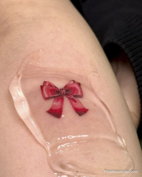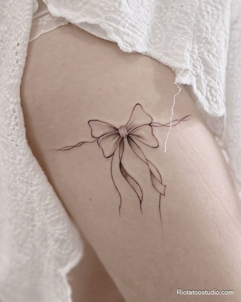 Hình xăm cái nơ tượng trưng cho vẻ đẹp nữ tính, sự khởi đầu mới và sợi dây gắn kết những mối quan hệ ý nghĩa trong cuộc sống.