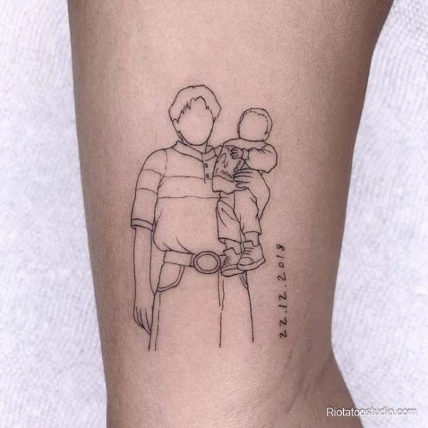 Từ giây phút đón con chào đời, người cha đã gánh vác một tình yêu lớn lao. Hình ảnh cha bế con nhẹ nhàng, nâng niu trong vòng tay thể hiện sự yêu thương vô điều kiện một tình yêu không cần lời nói, chỉ cần hành động. Mẫu hình xăm này thường được chọn bởi các ông bố mới sinh con, như một dấu ấn kỷ niệm cho khoảnh khắc quan trọng nhất cuộc đời. Có thể xăm chân dung thực tế (cha bế bé sơ sinh) hoặc cách điệu thành tranh vẽ, kết hợp thêm tên, ngày sinh của con.