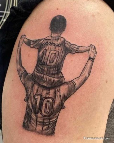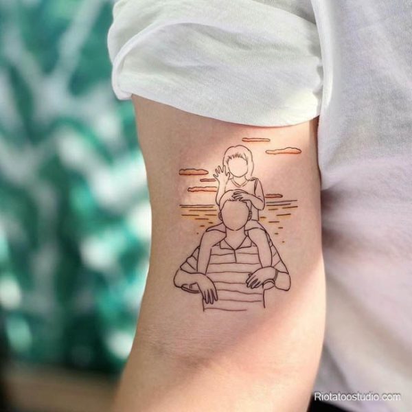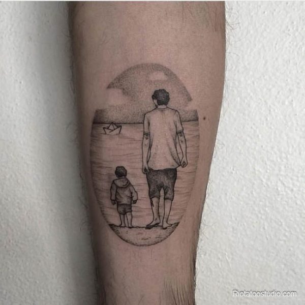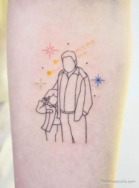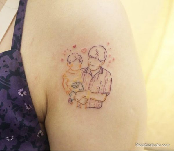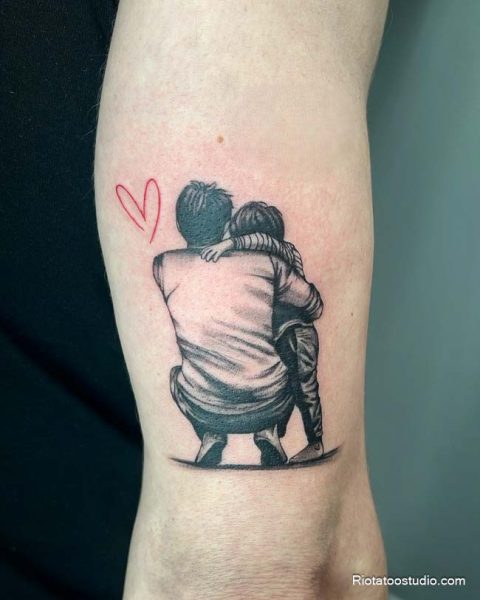 Tình cha con là một sợi dây gắn kết mạnh mẽ nhưng thầm lặng. Khác với sự dịu dàng của tình mẫu tử, tình phụ tử thể hiện qua những hành động nhỏ nhưng đầy ý nghĩa: một cái nắm tay, một cái cõng lưng, hay đơn giản là ánh mắt đầy tự hào. Những hình xăm cha con thường mô tả chính xác những khoảnh khắc ấy như lời nhắc nhở về một tình cảm bền chặt, không bao giờ phai nhòa.