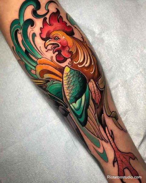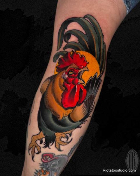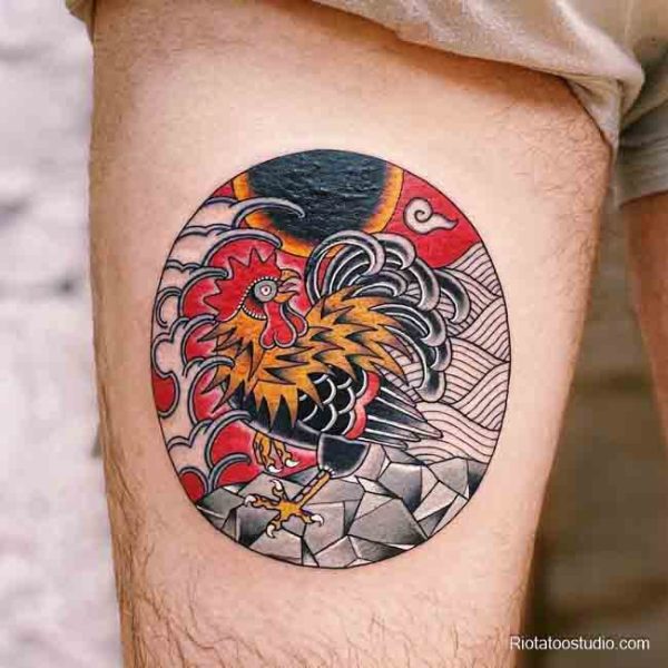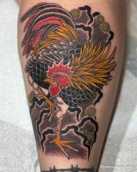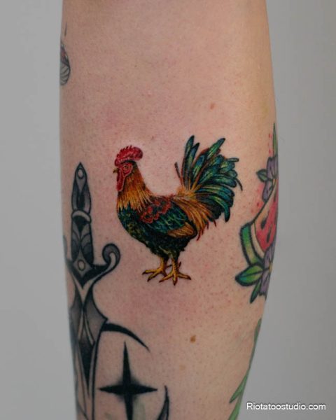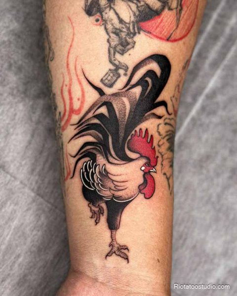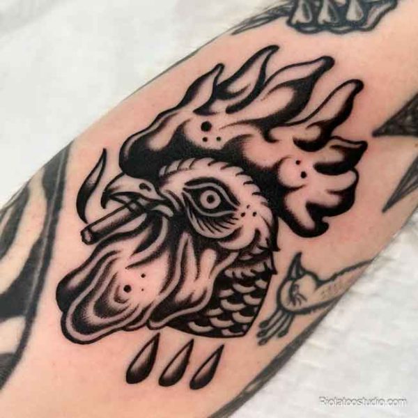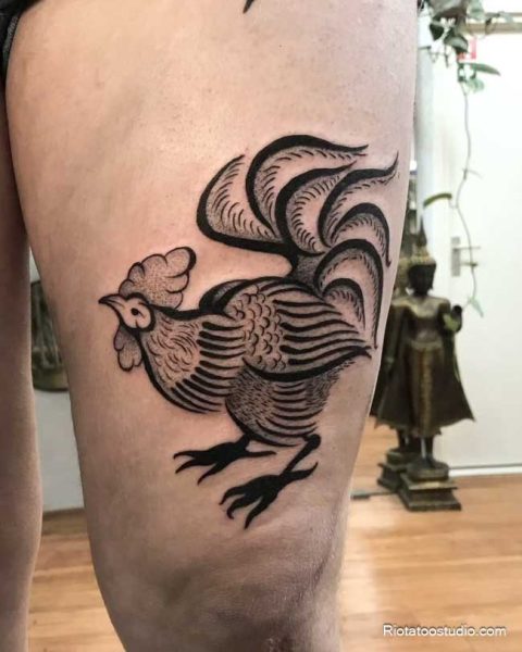 Hình xăm con gà trống – Biểu tượng của sức mạnh và lãnh đạo
