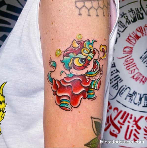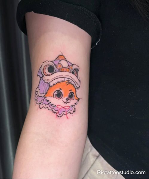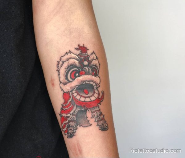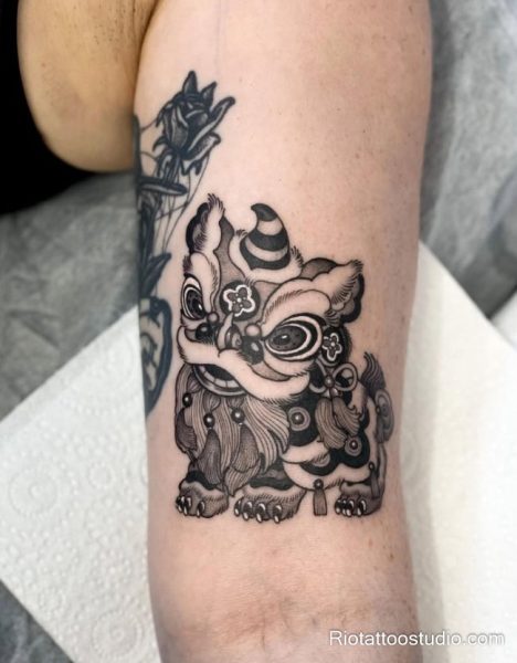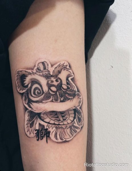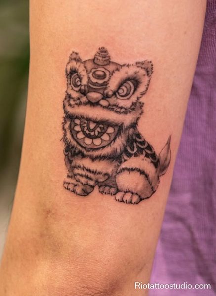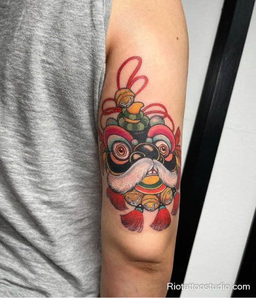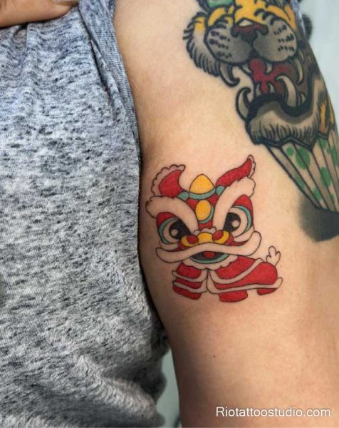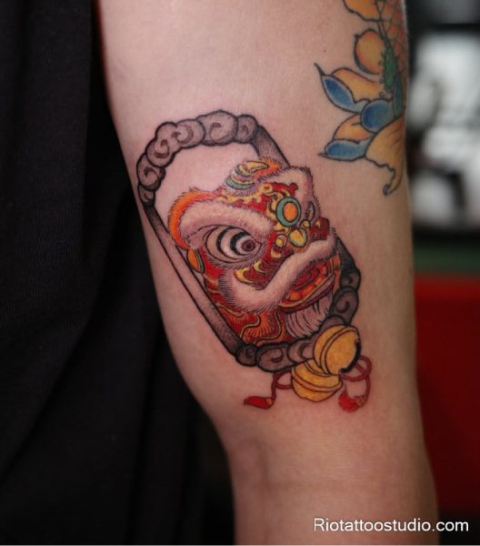 Hình xăm đầu lân ở bắp tay – Sức mạnh và cá tính