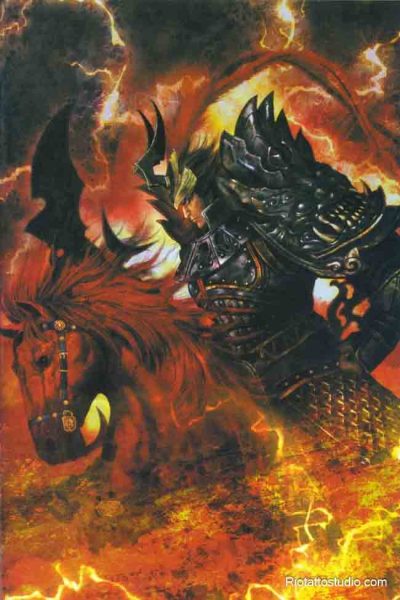 - Hình xăm Lữ Bố cưỡi ngựa Xích Thố: Toàn thân Lữ Bố cưỡi chiến mã Xích Thố, tay cầm Phương Thiên Họa Kích, phía sau là bầu trời giông bão hoặc chiến trường loạn lạc. Mẫu này nên xăm full lưng hoặc bắp đùi, cánh tay để biểu thị sức mạnh và tinh thần không bao giờ bỏ cuộc.