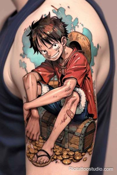 Hình xăm Luffy là kiểu hình xăm được thiết kế dựa trên hình tượng nhân vật Monkey D. Luffy – thủ lĩnh băng Mũ Rơm trong bộ truyện tranh và anime nổi tiếng “One Piece”. Luffy là một nhân vật nổi bật với tinh thần phiêu lưu, dũng cảm và khát vọng tự do mãnh liệt, không ngừng vươn lên để đạt được ước mơ trở thành Vua Hải Tặc.
