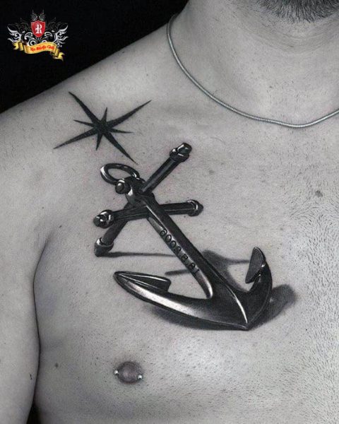 Hình xăm mỏ neo cho nam thường có kích thước lớn, đường nét táo bạo, thể hiện sự mạnh mẽ và quyết đoán. Khi kết hợp cùng các biểu tượng như la bàn, bánh lái hay đầu lâu, chúng càng tôn lên vẻ phong trần, bản lĩnh và chất phiêu lưu của người sở hữu.