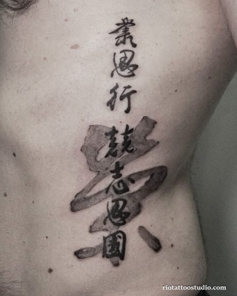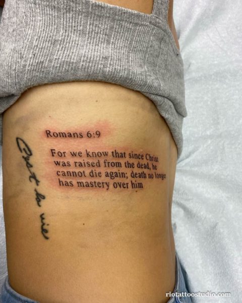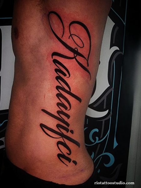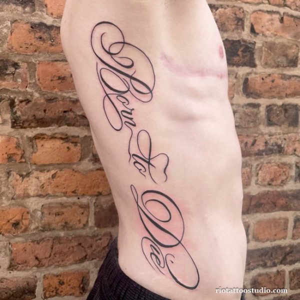 Nhiều anh em chọn khắc tên người thân, ngày tháng đặc biệt hoặc những lời nhắc nhở ý nghĩa. Ưu điểm của hình xăm mạn sườn nam là có thể bố trí các dòng chữ dài một cách nghệ thuật, tạo tổng thể hài hòa và thu hút ánh nhìn.