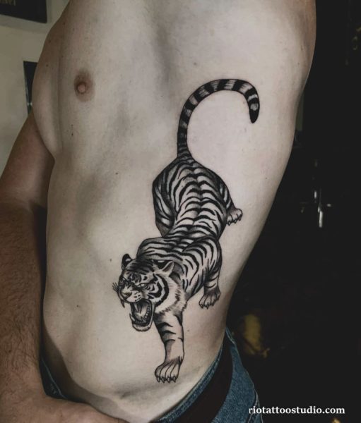 Với diện tích mạn sườn khá lớn, những hình xăm động vật có thể được thể hiện trọn vẹn chi tiết và sự uy nghi. Kỹ thuật shading và phối màu tinh xảo giúp hình ảnh trở nên sống động như thật.