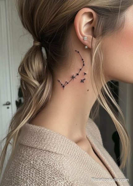 Sau tai là khu vực có diện tích khá nhỏ, vì thế các mẫu xăm thường được thiết kế tối giản và tinh tế. Tuy vậy, chỉ cần một bông hoa nhỏ, một ngôi sao hay vài đường nét hình học cũng đủ tạo nên sức hút mạnh mẽ. Đây là điểm nhấn khiến người khác tò mò và muốn khám phá thêm về cá tính của bạn. Đặc biệt, vị trí này còn giúp tôn lên sự thanh thoát của gương mặt và đường nét mái tóc, mang đến một vẻ đẹp vừa mềm mại vừa ấn tượng.