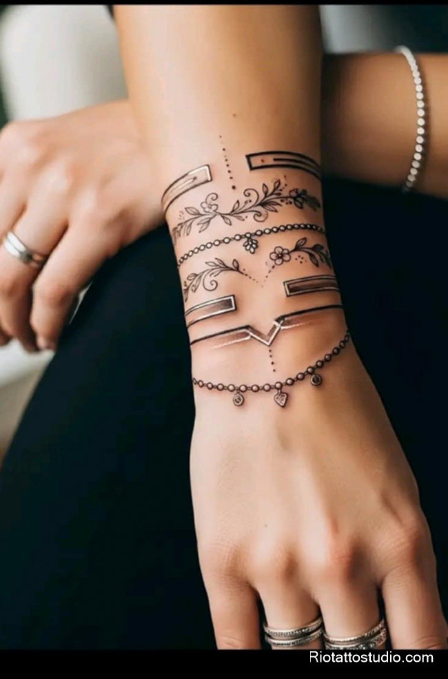 Xăm henna mini cổ tay thoắt ẩn thoắt hiện