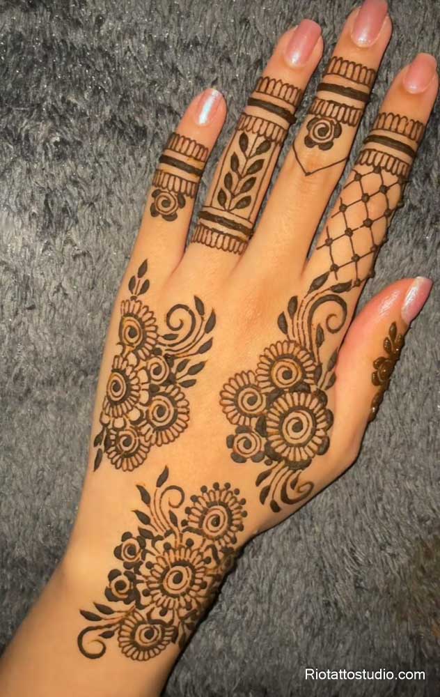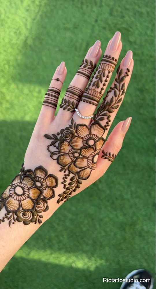 Mandala (hình tròn tượng trưng cho vũ trụ) là họa tiết kinh điển của Henna. Mẫu Mandala Henna thường được vẽ trên mu bàn tay, cổ tay hoặc cánh tay tạo nên vẻ đẹp bí ẩn, cầu kỳ và rất nữ tính. Họa tiết này được yêu thích vì tính đối xứng hoàn hảo và mang ý nghĩa cân bằng và bảo vệ năng lượng tâm linh.